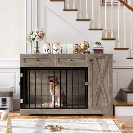 Ansel 47.2" W Big Furniture Style Wooden Large Dog Crate Furniture, Dog Kennel Cage Indoor