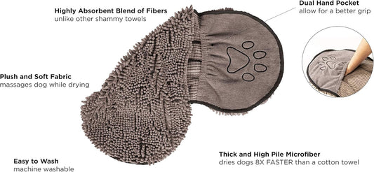 • Shammy Dog Towels for Drying Dogs - Heavy Duty Soft Microfiber Bath Towel - Super Absorbent, Quick Drying, & Machine Washable - Must Have Dog & Cat Bathing Supplies | Grey 13X31