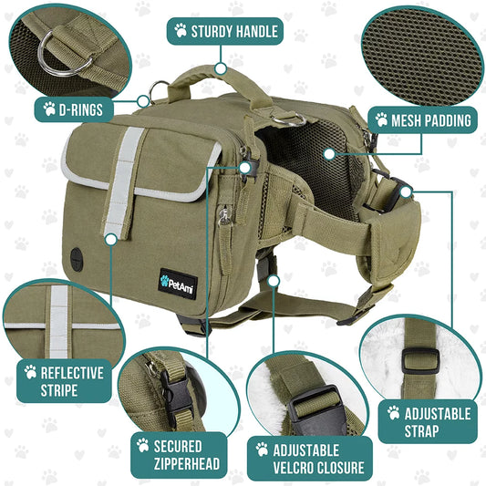 Hunderucksack für mittelgroße und große Hunde, Hundesatteltasche zum Tragen für Hunde, Satteltasche mit Geschirr und reflektierenden Sicherheitsseitentaschen zum Wandern, Camping, Hundeweste für Reisen (blau, mittelgroß)